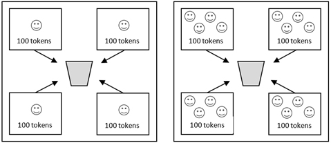 Figure 1. The public goods game played by individuals or teams